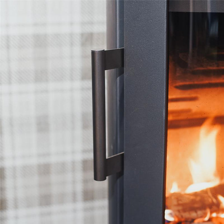 The curved lines and low distance to combustibles make this perfect for an installation into a corner, but it also looks great on a straight wall, or even installed in the centre of a room. With a contemporary look, it is a great choice for a modern home.