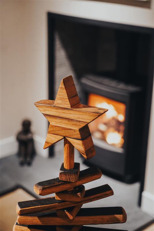 Handmade from whisky staves, these stunning trees include an interchangeable topper, so that you can display the tree all year round!
