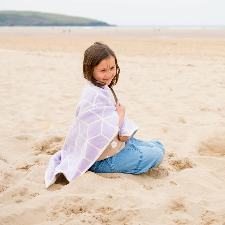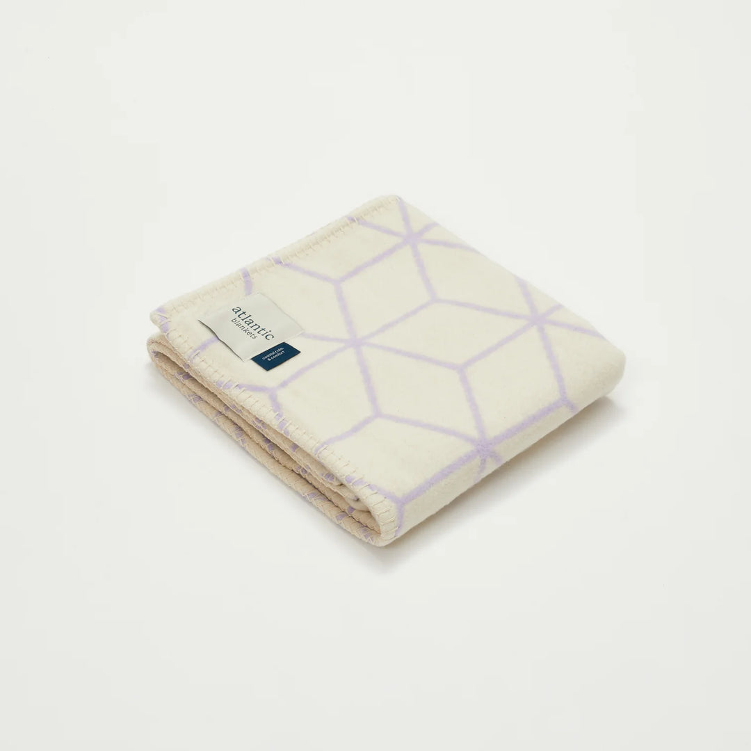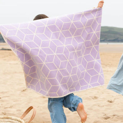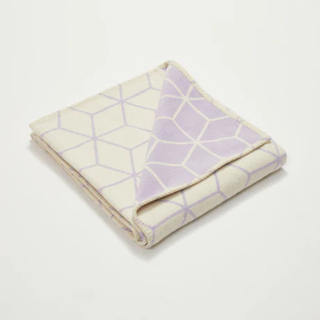 Planet-friendly made from recycled cotton, Atlantic Blankets lilac geometric baby blanket creates a snuggly, protective cocoon