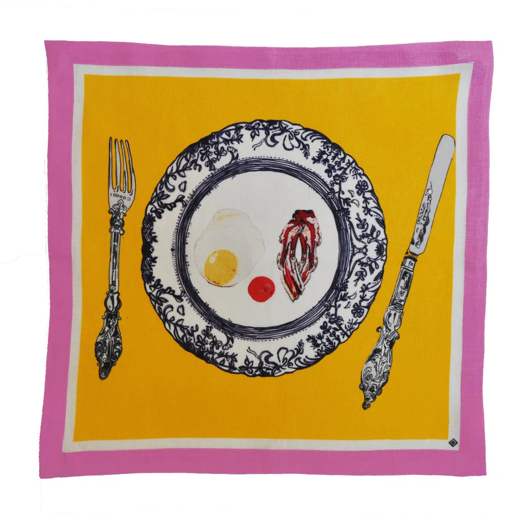 Decorate your table and bring colour and fun into your home with these Linen Table Napkins / "Egg & Bacon", Jessica Russell Flint napkins.